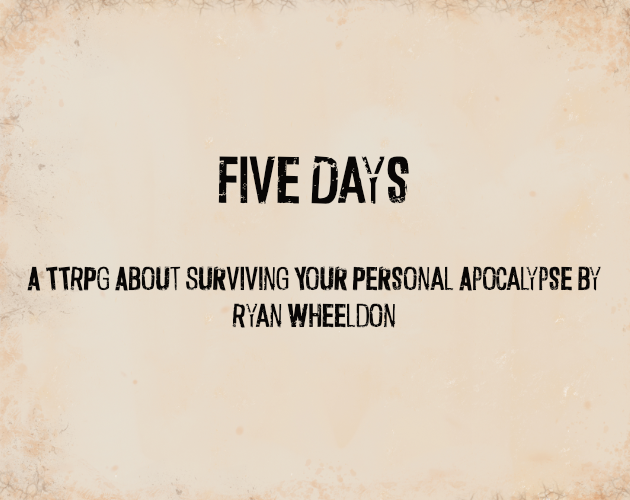 Five Days is a one page, artless RPG about preparing for the end of the world.